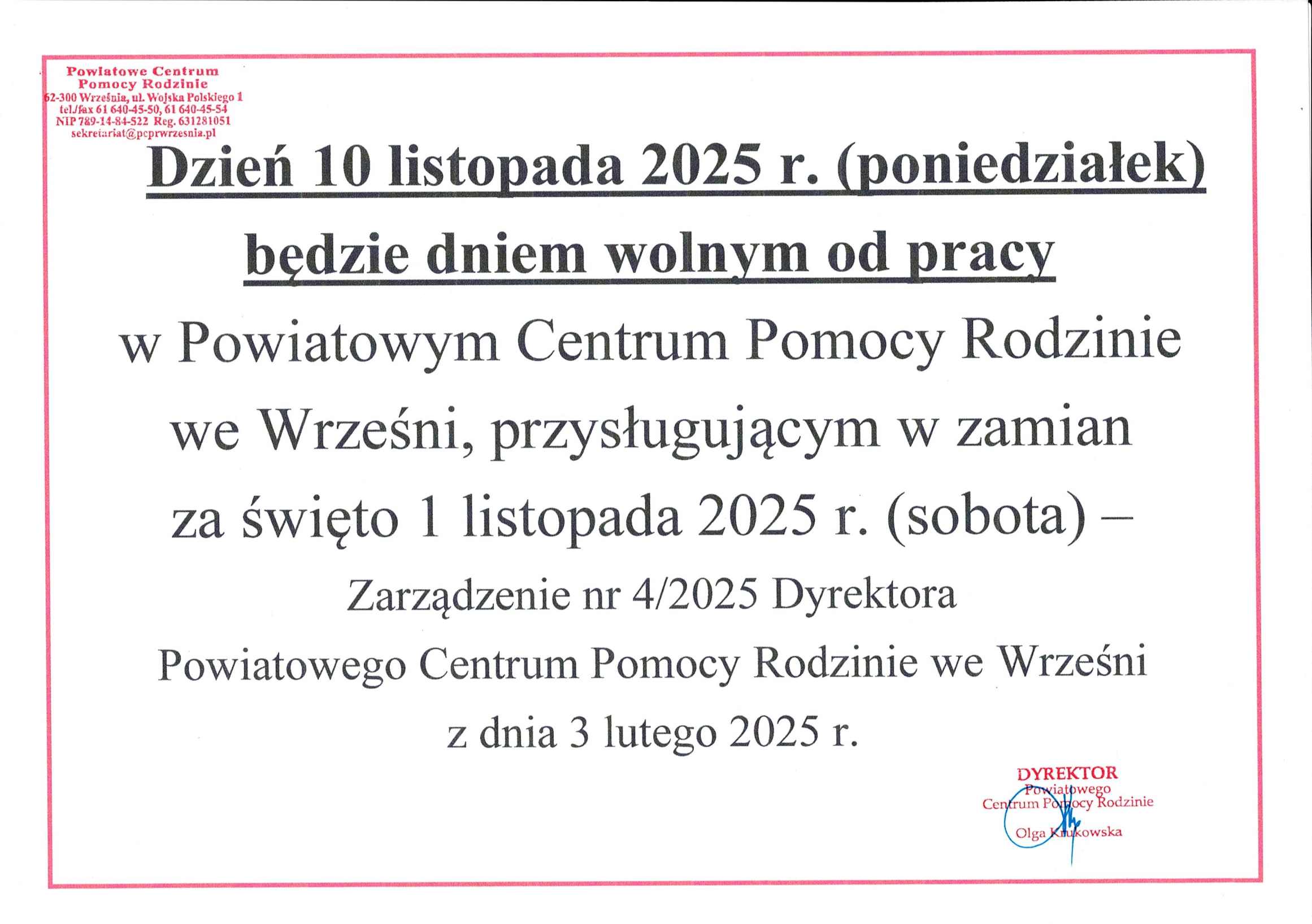 W imieniu Starosty Powiatowe Centrum Pomocy Rodzinie we Wrześni sprawuje nadzór nad funkcjonowaniem placówek powiatowych działających w sferze pomocy społecznej.